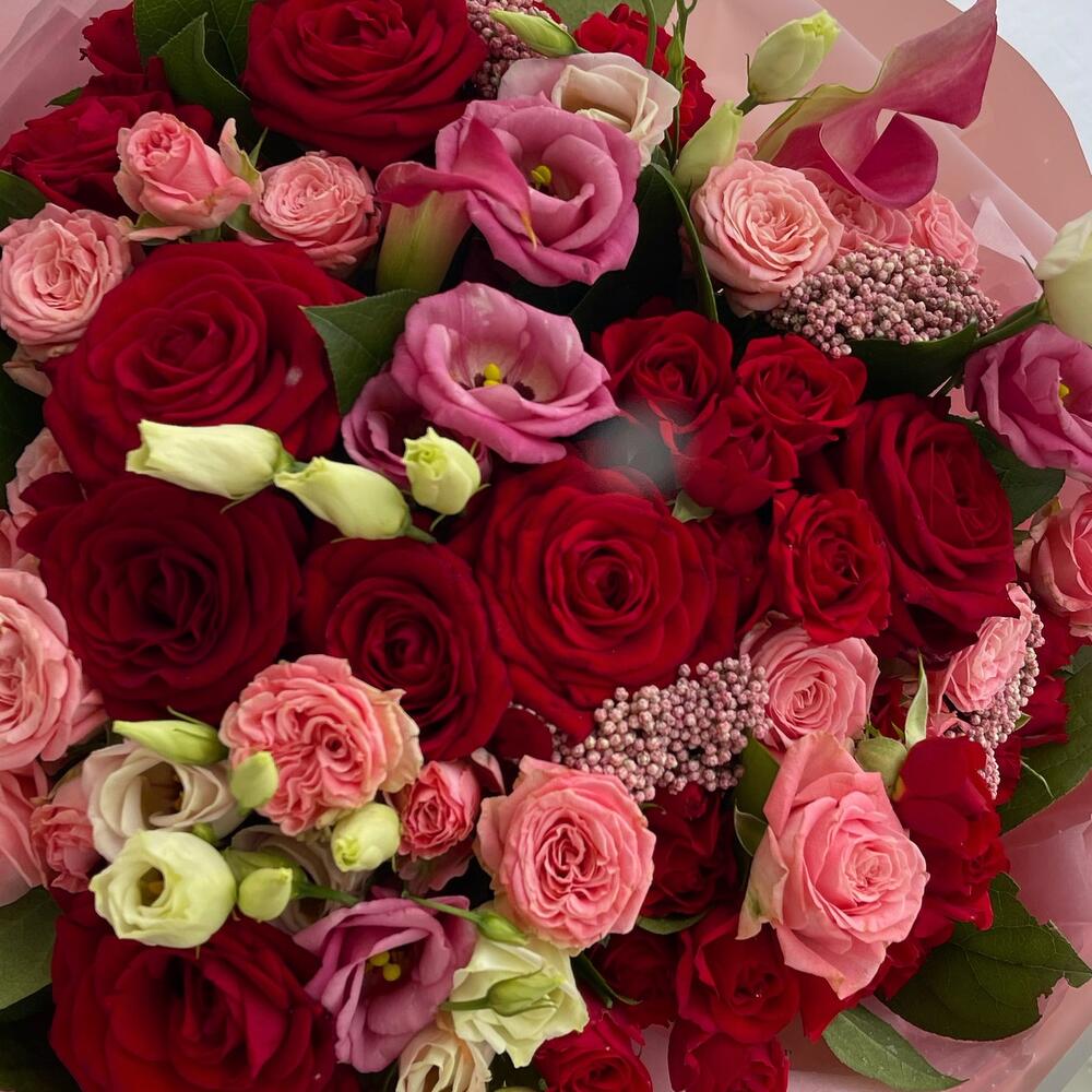 Классические розы и экзотическая эустома в большом и красивом букете создают неповторимую картину, чтобы вы могли порадовать вашу любимую ❤️Уважаемые покупатели! Пожалуйста обратите ваше внимание на размер букета при заказе! Он учитывается вместе с упаковкой Чтобы наши прекрасные букеты дольше радовали получателя рекомендуем вам: ⭐Обновить срез букета перед тем, как поставить его в воду⭐Ставить цветы в прохладную проточную воду ⭐Меняйте воду в вазу каждый день⭐Не забывайте подрезать цветы, перед тем, как ставить их в воду⭐Не ставить у отопительных приборов и на сквозняке Фирменный стиль наших букетов разработан специально так, чтобы упаковку не нужно было снимать, так как она придаёт целостность букету и прекрасно держится в вазе
